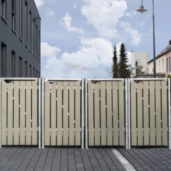 Cache-poubelle 4 Compartiments Müllbox En Bois Traité Gris 4x240L – HIDE