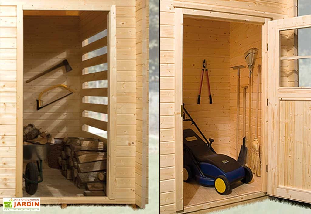 Votre abri de jardin multifonctions Ingolstadt de chez Weka est de fabrication allemande. Cet abri est composé de trois parties (local à outils, lieu de stockage du bois et une pièce principale) que vous pourrez moduler selon vos envies. Ses dimensions sont : 3 x 4,5 m (l,l) avec trois pièces dont deux de 150 x 150 cm (l,l) et une de 300 x 300 cm (l,l).