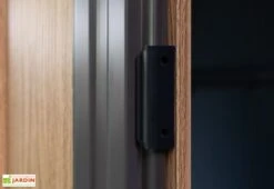 Fabriqué en tôle d’acier galvanisée par électrolyse, cet abri de jardin est résistant à la rouille et aux rayures. Il dispose également d’un toit à deux versants capable de supporter une charge de neige allant jusqu’à 100 kg/m². Le design moderne de l’abri de jardin est complété par sa couleur imitation bois, qui ajoute une touche de chaleur à votre jardin.