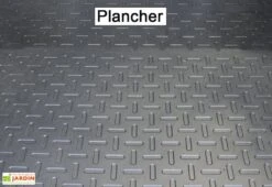 La maison de jardin en polycarbonate dispose d’un cadre en aluminium qui permet de solidifier et stabiliser la structure. La stabilité est également assurée par un plancher antidérapant inclus. Le plancher permet également de protéger les équipements entreposés du sol et de l’humidité et d’éviter la création d’une dalle de béton.