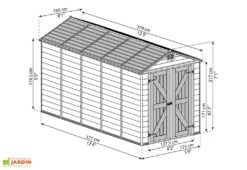 L’abri de jardin en polycarbonate mesure 3,78 m de profondeur pour 1,85 m de largeur et 2,17 m de hauteur ce qui lui offre une grande superficie de plus de 7 m² vous permettant de stocker vélos, mobiliers de jardin, outils ou encore gros équipements. Sa grande double porte vous permet d’entrer et de sortir facilement vos équipements. Elle mesure 127,5 x 171 cm (l,h).