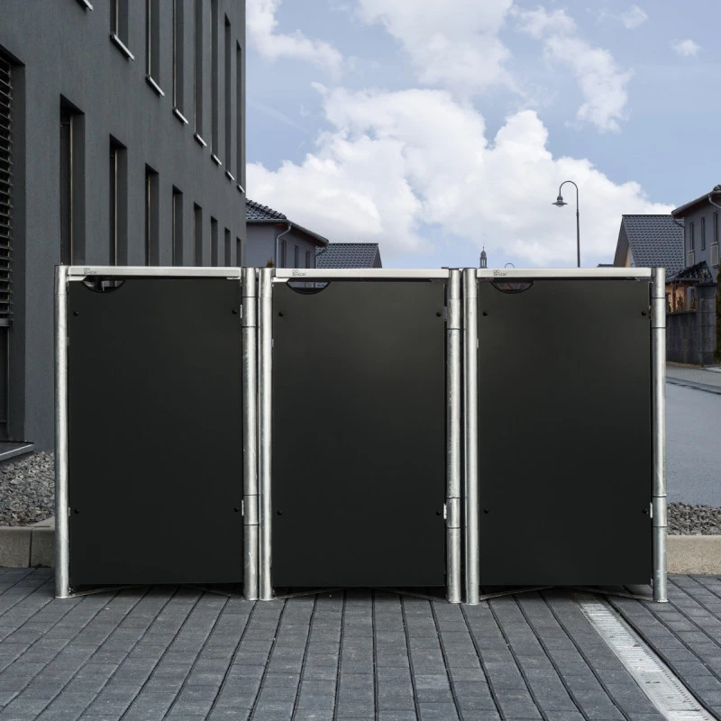 L’avis du spécialiste sur la cache-poubelle 3 compartiments Müllbox en aluminium noir 3x240L – HIDE
