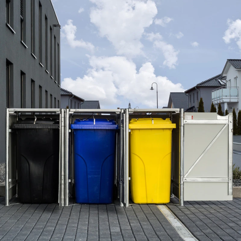 Avec ses 3 compartiments, le cache-poubelle Hide vous permettra de pratiquer un tri sélectif en un simple geste. Réalisé avec des matériaux de première qualité, ce cache-poubelle accueille 3 conteneurs à déchets d’un volume de 240L chacun. Le cadre est en acier galvanisé à chaud et les parois sont réalisées en aluminium composite, pour une durabilité et une solidité inégalées.