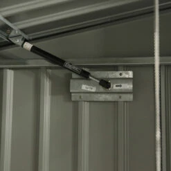L’ouverture peut s’effectuer par une large double porte (150x127cm) situé sur la face avant pour sortir la poubelle ou en soulevant le couvercle pour une utilisation régulière. L’ouverture du couvercle est facilitée par un vérin, et elle provoque l’ouverture automatique du couvercle de la poubelle au moyen d’une chainette avec crochet. La toiture monopente est dotée d’une pente accentuée pour faciliter un écoulement optimal de l’eau de pluie et une évacuation naturelle de l’amas de neige. Elle peut supporter une charge de neige maximale de 100kg/m².