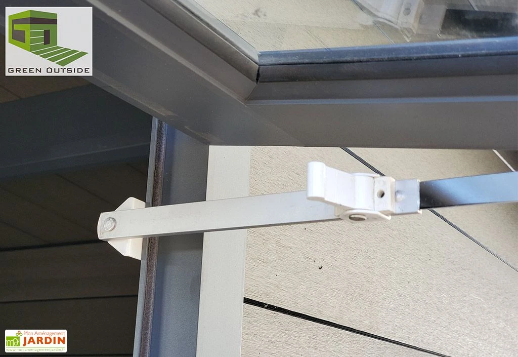Cette fenêtre s’installe sur les abris de jardin Tradi et Actual en version 3 x 3 m ou 6 x 3 m de la marque Green Outside.