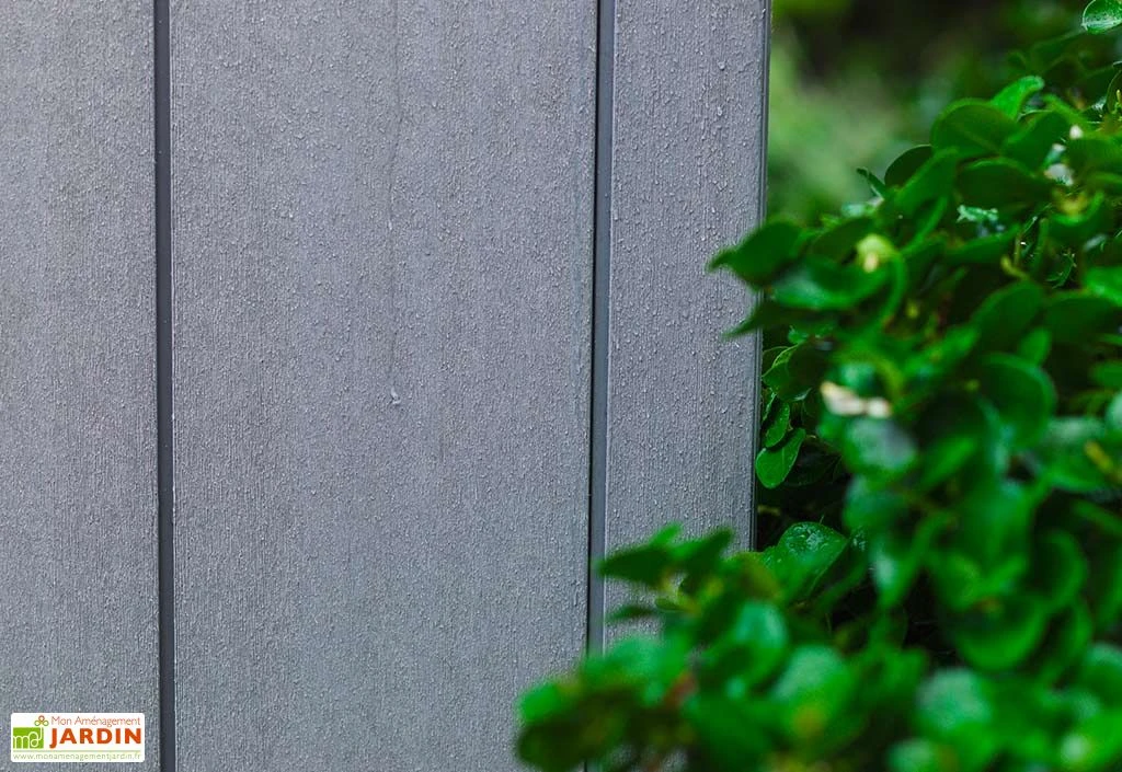 Les parois de l’abri de jardin imitent l’aspect du bois poncé en laissant même apparaître les veines du bois. Pour le personnaliser au maximum vous pouvez peindre les murs. L’abri est équipé d’une double porte avec un dispositif de verrouillage. L’abri de jardin bénéficie d’une longue garantie de 10 ans.