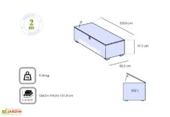 Le coffre de 302 L vous permet de ranger vos outils ou équipements de jardin. Il permet également à deux adultes de s’assoir en servant de banc.