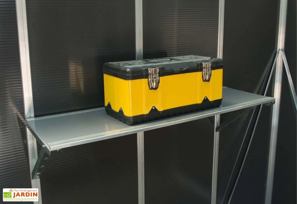 Ces étagères en polycarbonate de chez Canopia permettent d’optimiser votre espace de rangement dans votre abri de jardin Yukon, mais aussi de vous faire gagner de la place au sol et d’organiser efficacement votre abri de jardin.