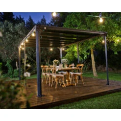 Voici un modèle prestigieux de pergola, d’une surface de 13,77m², le modèle Milano™ 4300 de Canopia by Palram. Le cadre est recouvert d’une peinture anthracite par poudrage, qui résiste durablement à la corrosion.